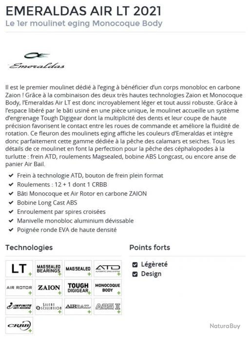 Le moulinet Emeraldas Air LT 2500 XH est le premier moulinet dédié à l’eging à bénéficier d’un corps monobloc en carbone Zaion.